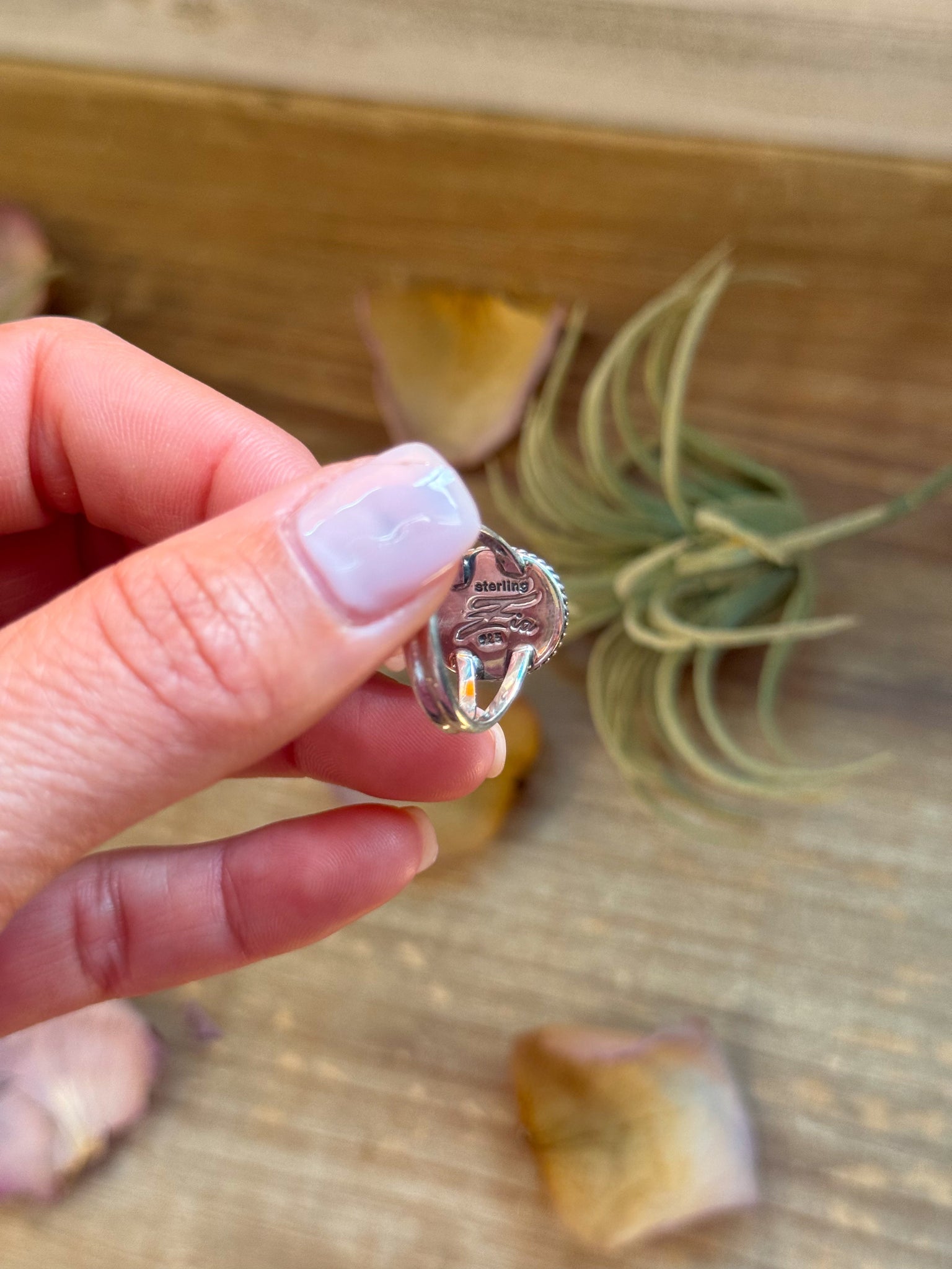 Each stone is unique, showcasing natural color variations that make every piece truly one-of-a-kind. Set in solid sterling silver, this size 8 ring captures timeless Western style — perfect for daily wear or statement layering.